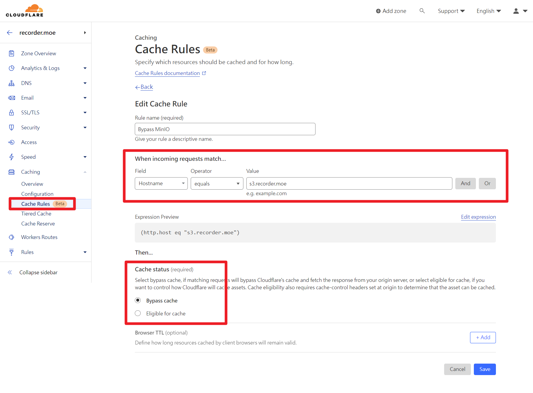 在 Cloudflare 上新增 CacheRule,將整個網域 Bypass cache。