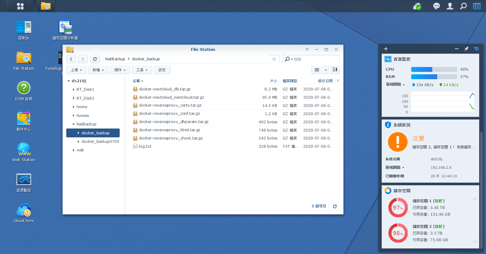 機器有兩台: DigitalOcean 租的 VPS 做主要伺服器;我家的 Synology NAS 做備份伺服器