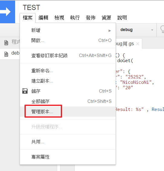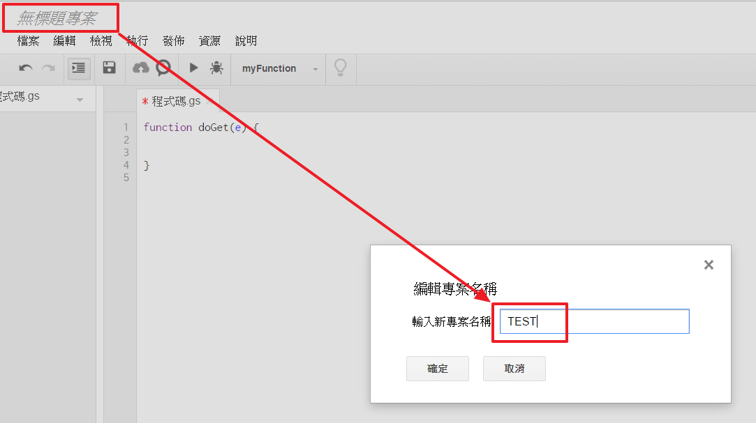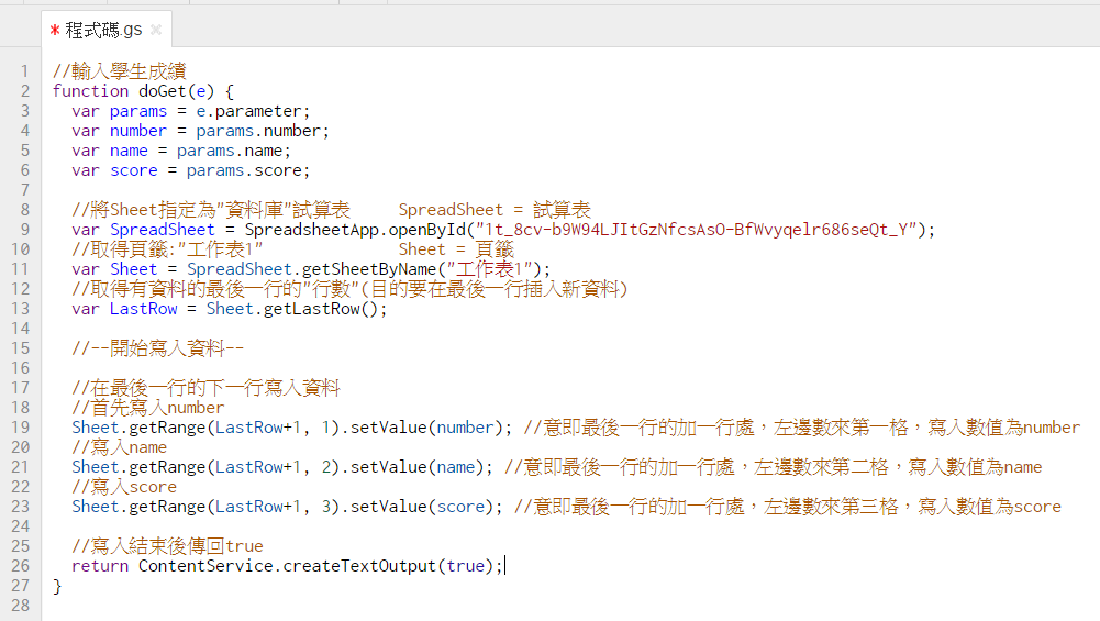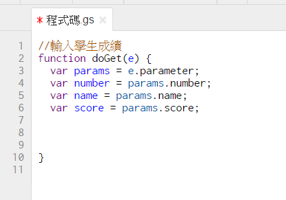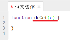 依照說明文件,應用程式收到 GET Request 以後會執行 doGet(e) 函數,e 為 GET 網址帶入參數,也就是我們送的資料