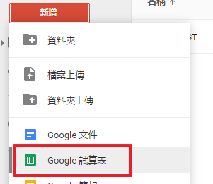 接著建立一個試算表,位置不限,如果是在別人的帳號內記得開啟共用權限