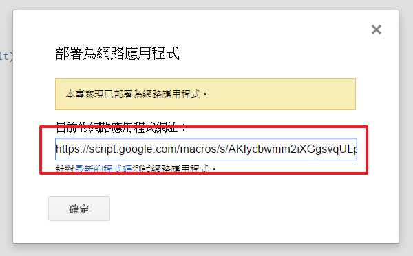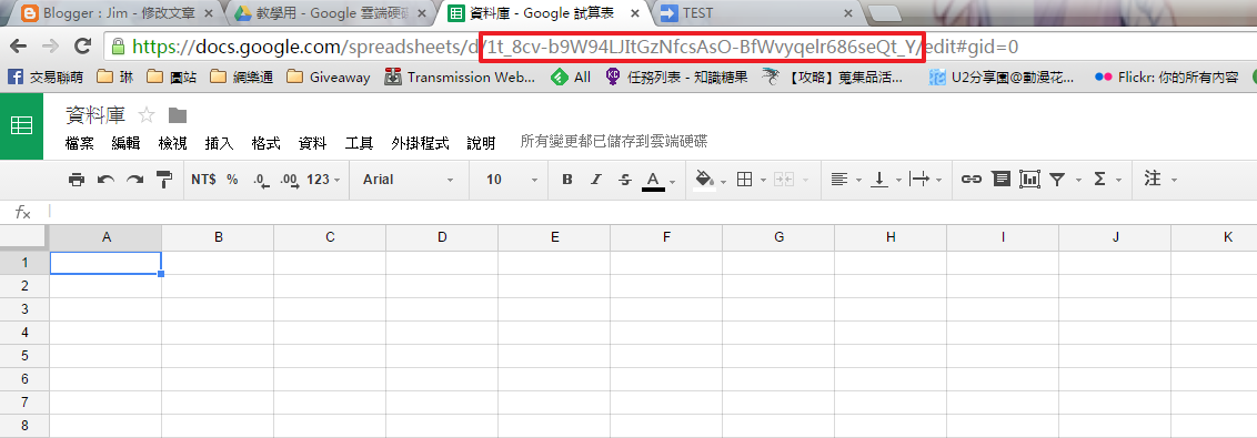 將試算表打開,網址列紅框處就是此試算表的 ID,請記錄下來