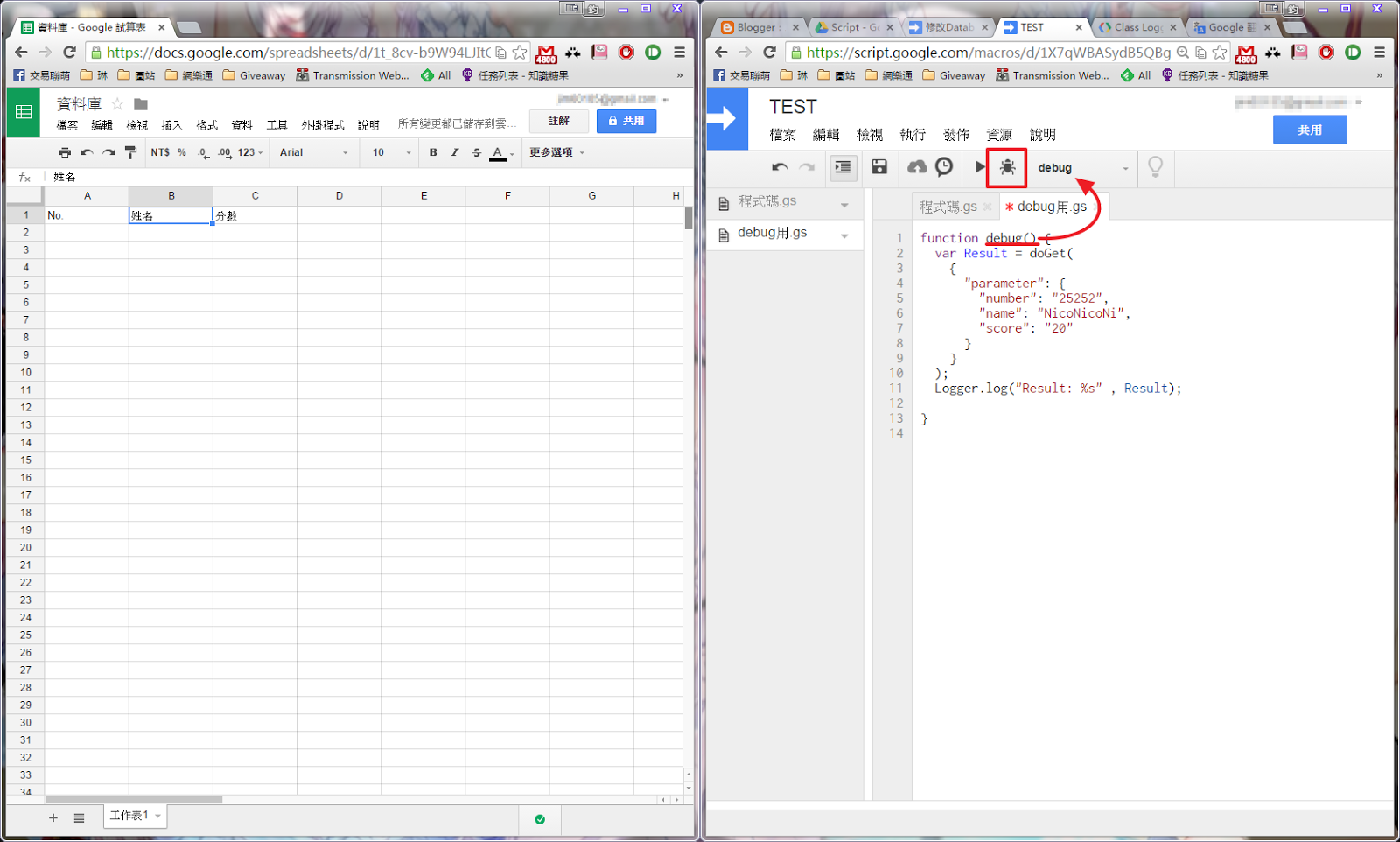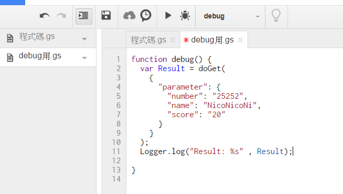 按小蟲圖案即可進行 debug,注意函式名稱要選對