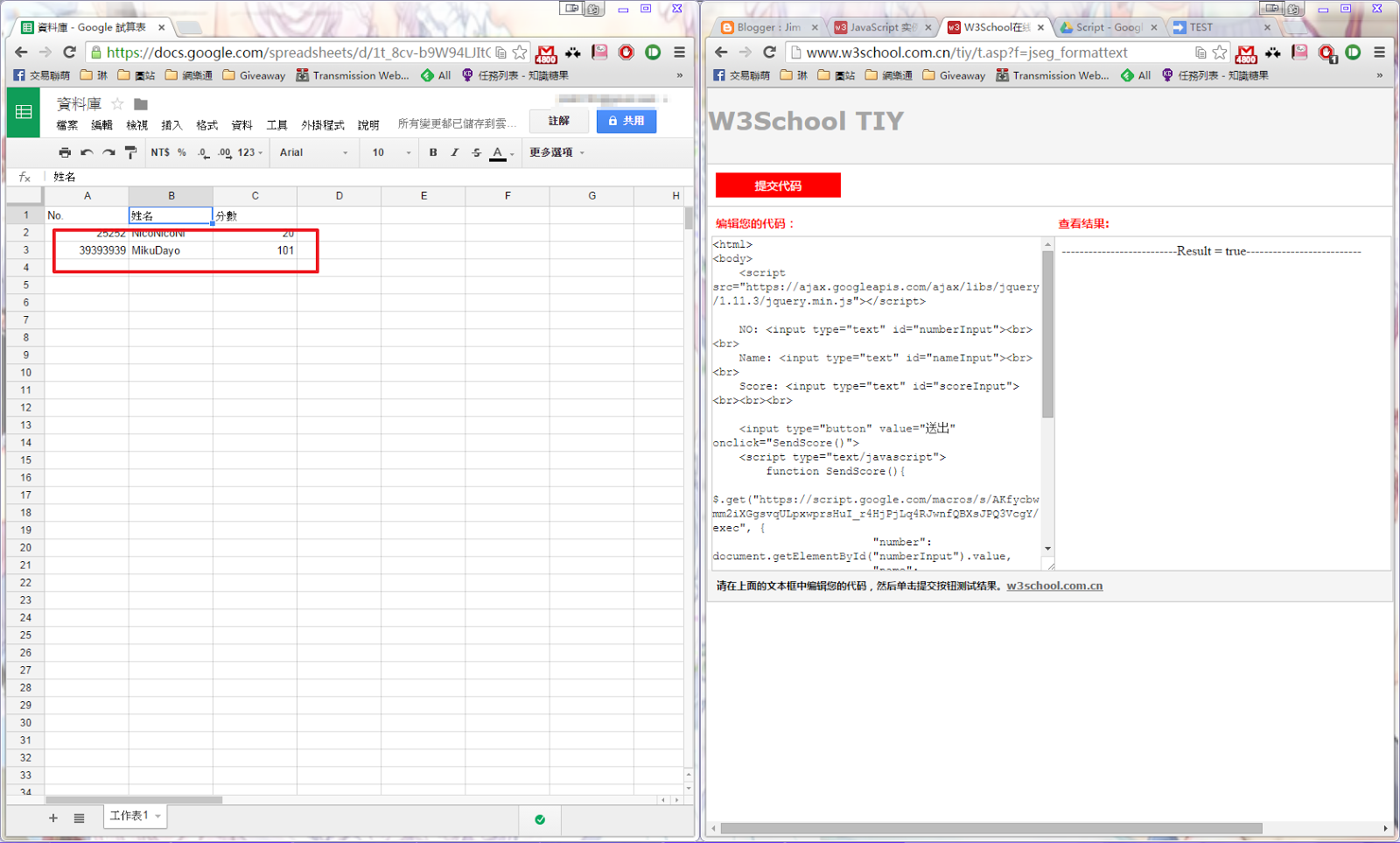 - 程式內容可以對特定 Google 試算表文件存取並寫入