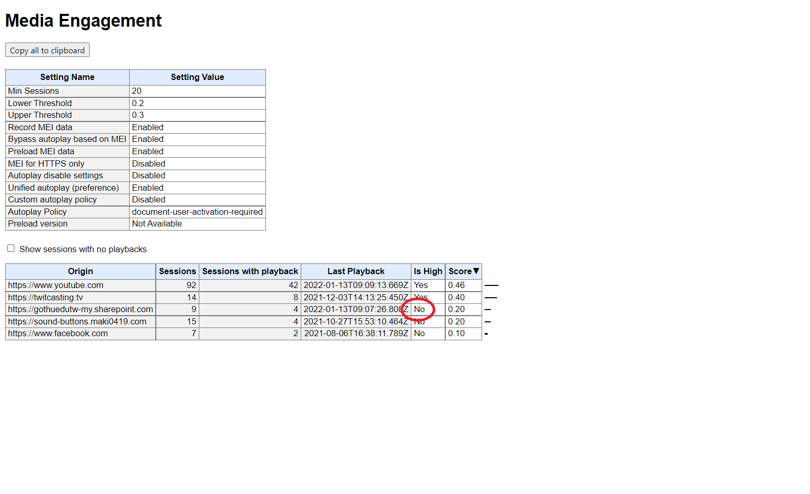 Chrome 使用者可以訪問 about://media-engagement 查看自己的 MEI。