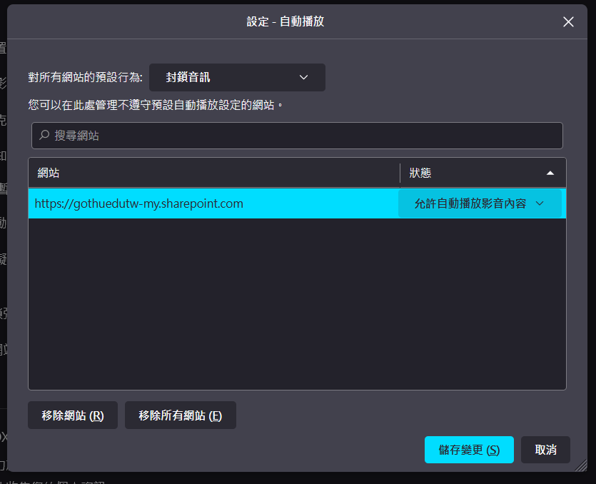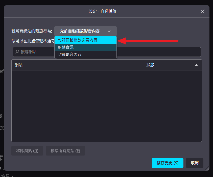 | 允許自動播放影音內容 | 全面允許自動播放 |
