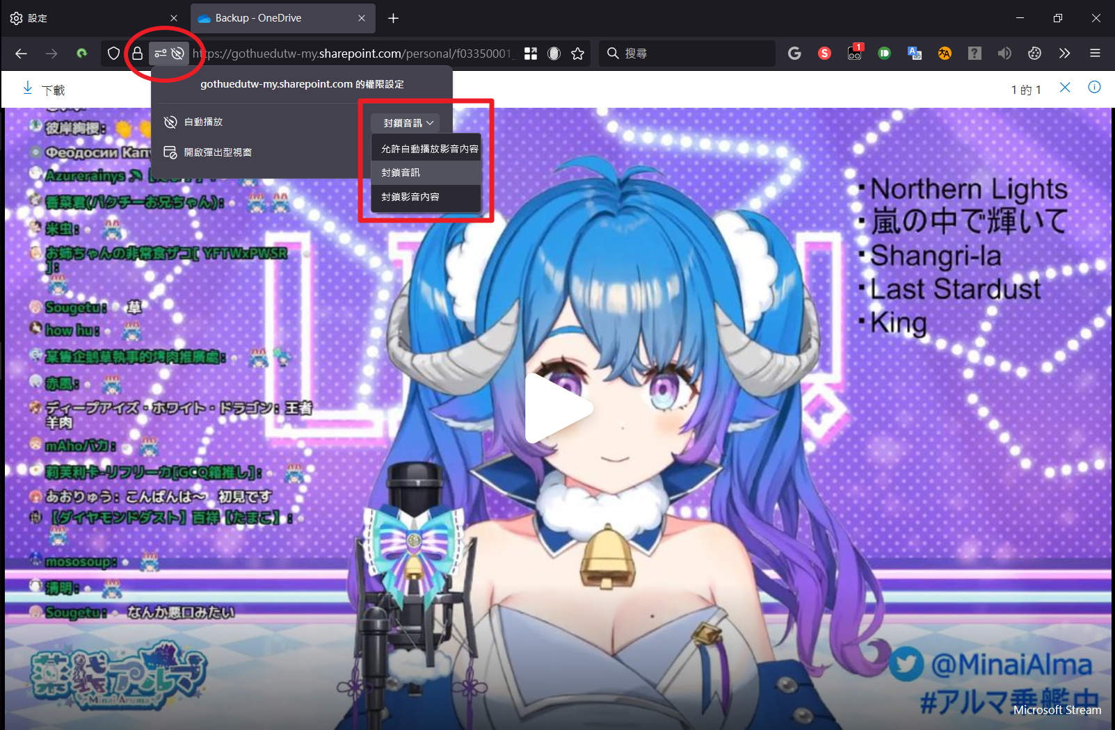 如果你預設設定是選擇封鎖,可以再針對個別網頁設定例外。來到站點觸發一次阻擋 Autoplay,網址列左方會多一個「禁止播放」的符號,此時點它就能在下拉選單中設定自動播放的例外規則。