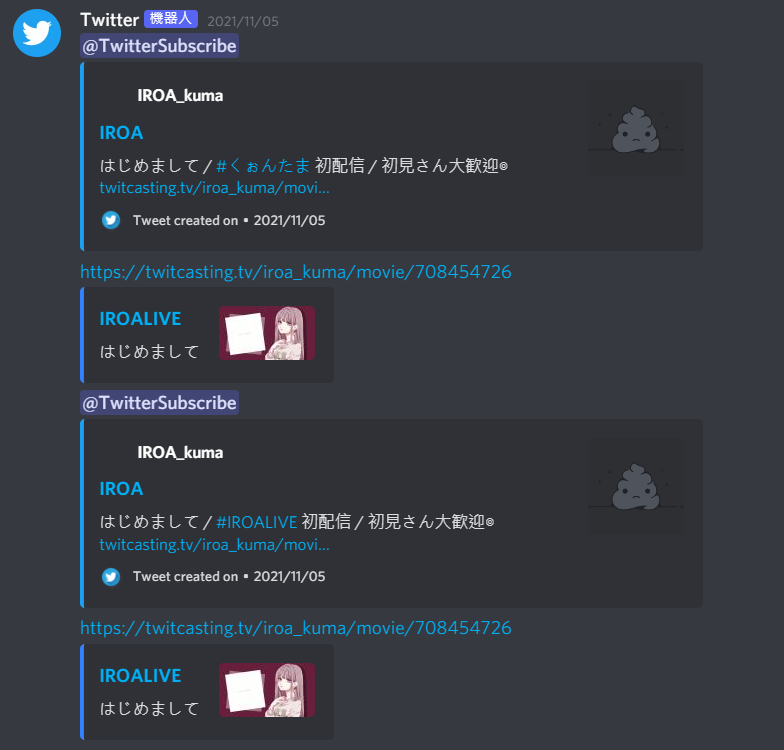 TwitCasting 初配信發推時用到 #くぉんたま 的 tag