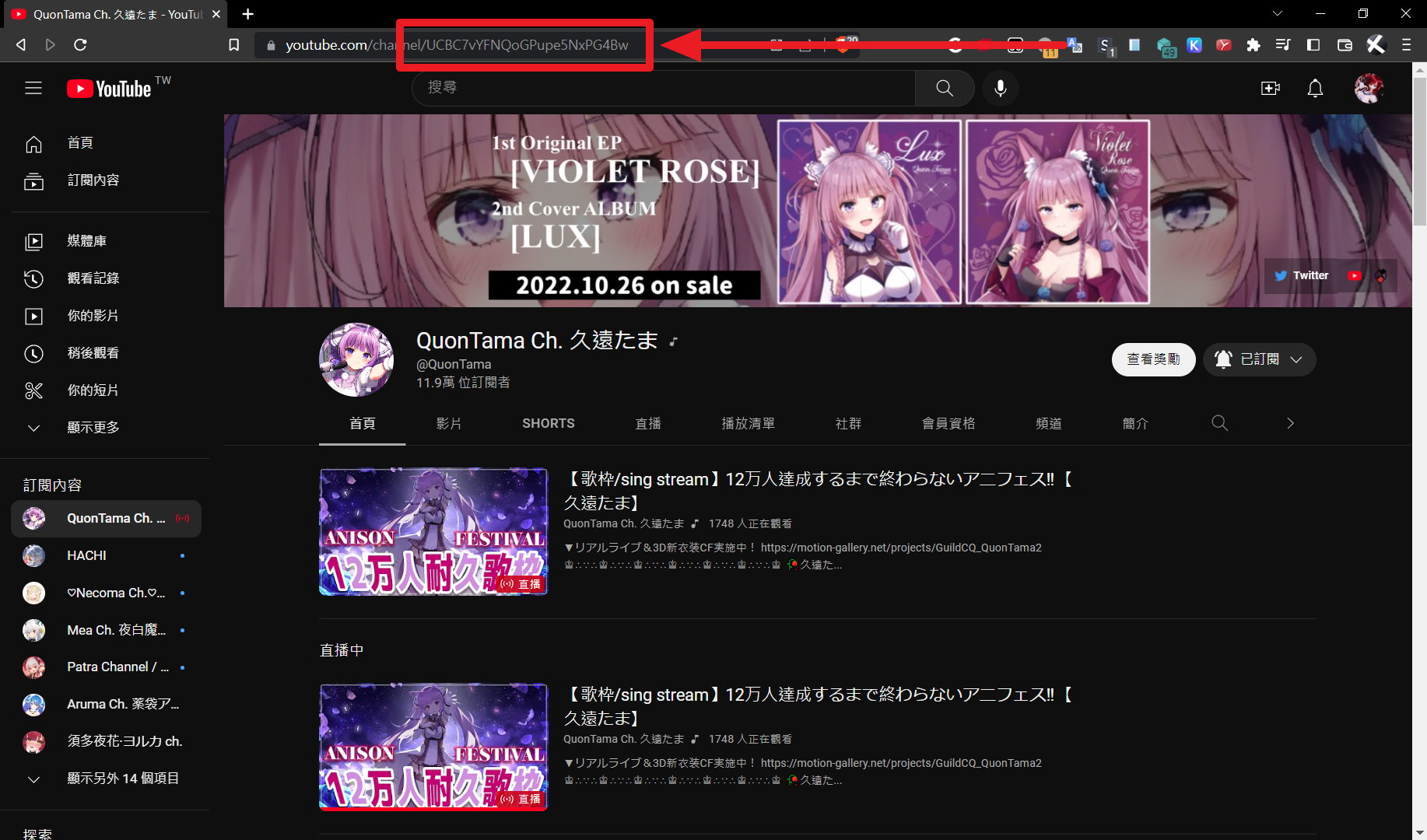 - 把頻道 ID 去掉開頭的 UC 就是使用者 ID 了
