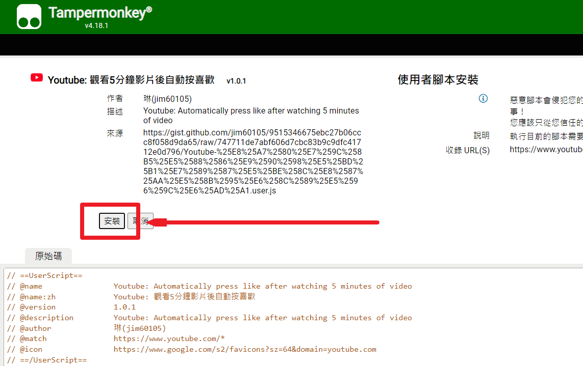 Youtube 觀看 5 分鐘影片後自動按喜歡