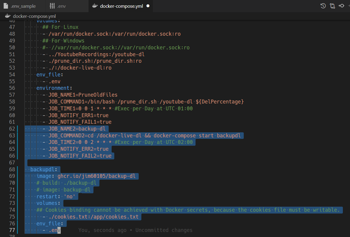 這有點複雜,且本文的重點不在這裡,請參照官方文件編輯 docker-compose.yml,把 backup-dl,和 jobber 下半部份取消註解