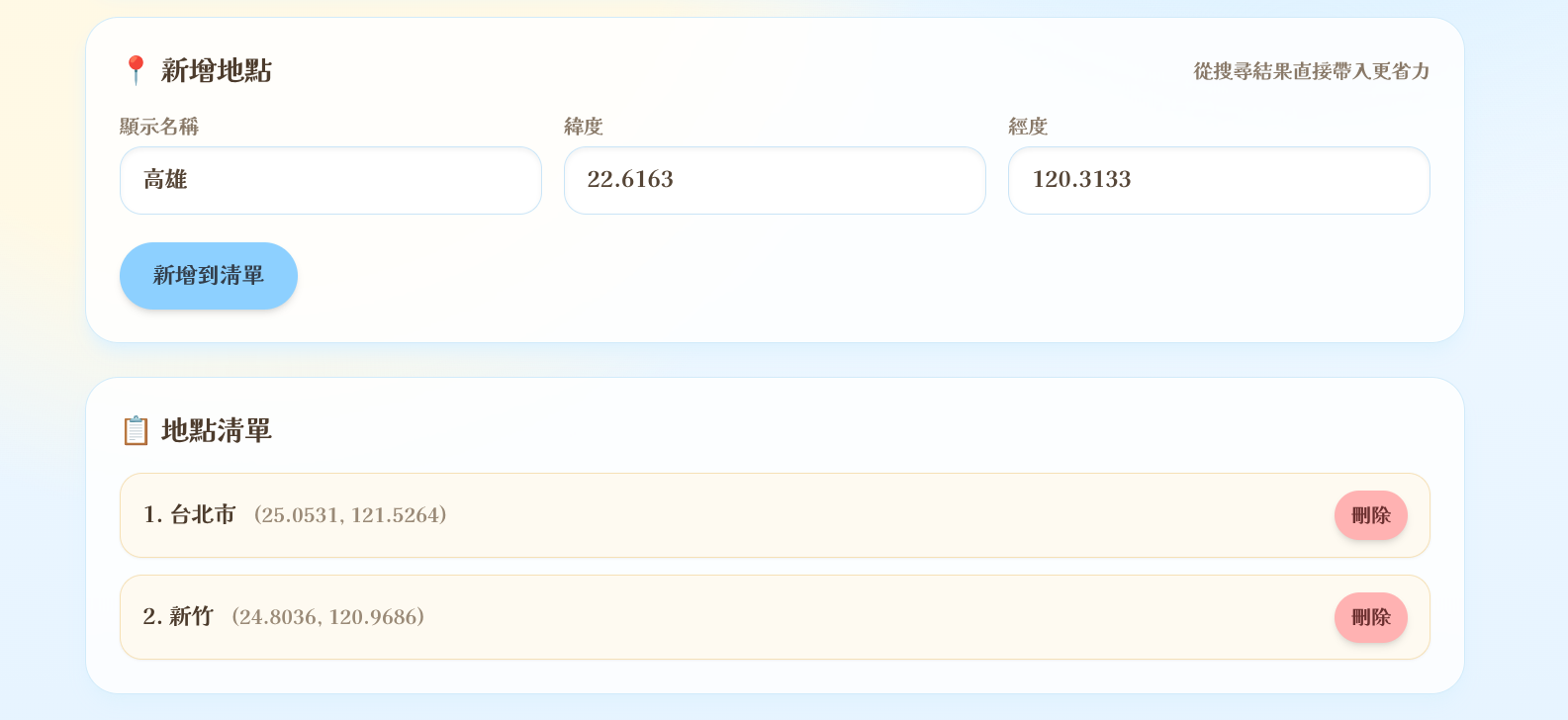 - 可重複上述步驟新增多個地點