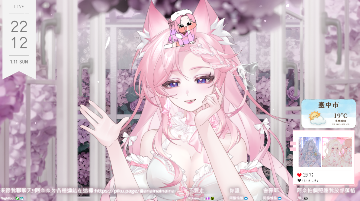 小工具採用透明背景設計,放入 OBS 瀏覽器來源後不會遮擋到直播畫面。配合可愛的手繪風格,讓天氣資訊成為直播畫面的一部分而非干擾元素。