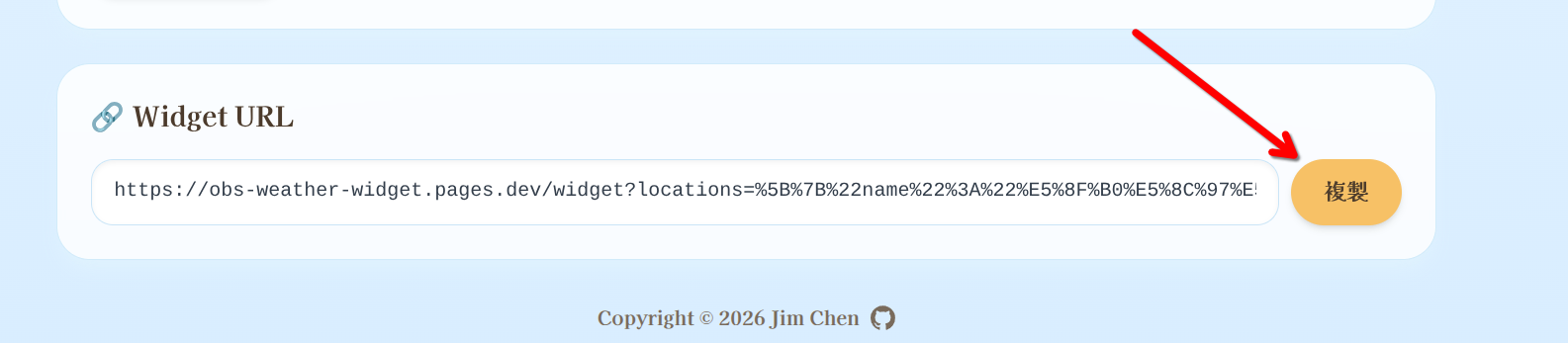 - 複製產生後的 Widget URL
