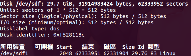 復原 partition table,並增大容量至記憶卡最大,再恢復 /dev/sdf2 格式