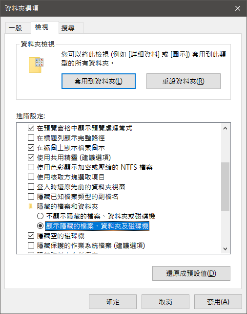 在開始以前,請先開啟「顯示隱藏檔案」,關閉「隱藏已知檔案類型的副檔名」、「隱藏保護的作業系統檔案」