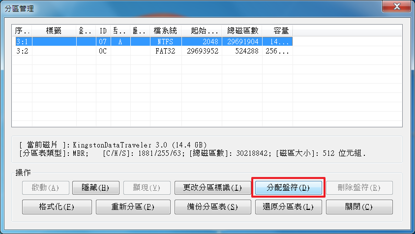 將第一分區盤符恢復