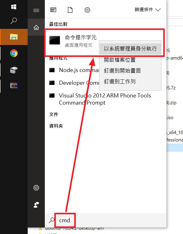 回到我的文件,將圖中四個 cmd 檔案傳送捷徑到桌面