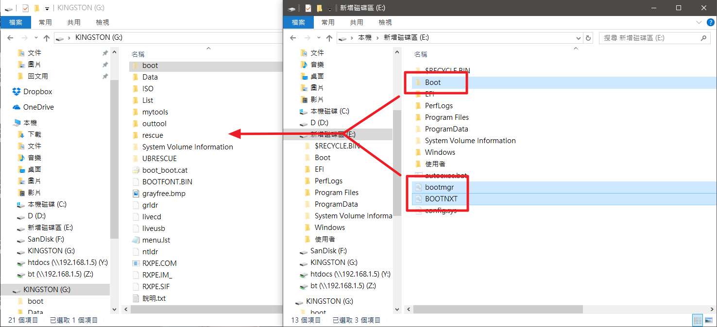 - 再不行,將整支隨身碟內容複製出來,格式化掉,再複製回去 (注意勿遺漏隱藏檔案及重作 BOOTICE 引導)