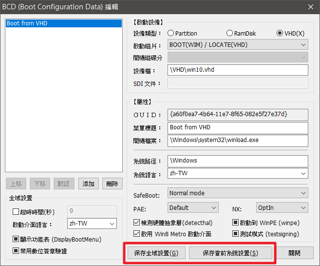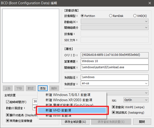 把原有的 Win10 項目砍掉,重新添加 VHD 啟動項