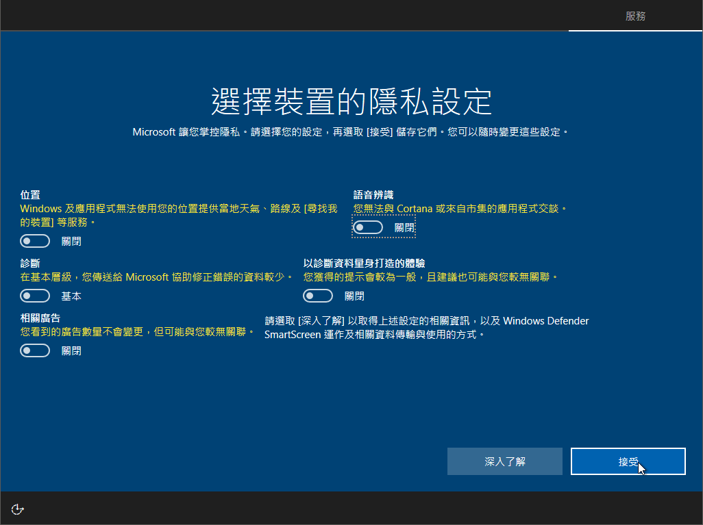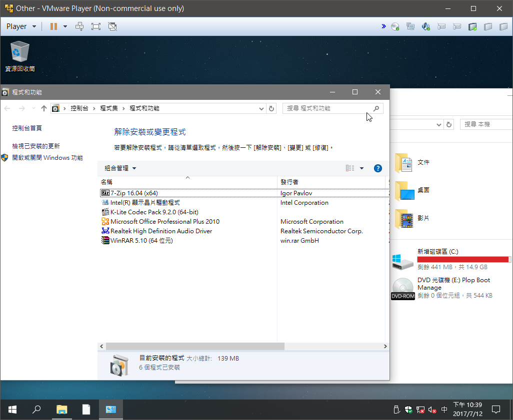 大小給 15G,Win10 裝到能用下限差不多是這樣