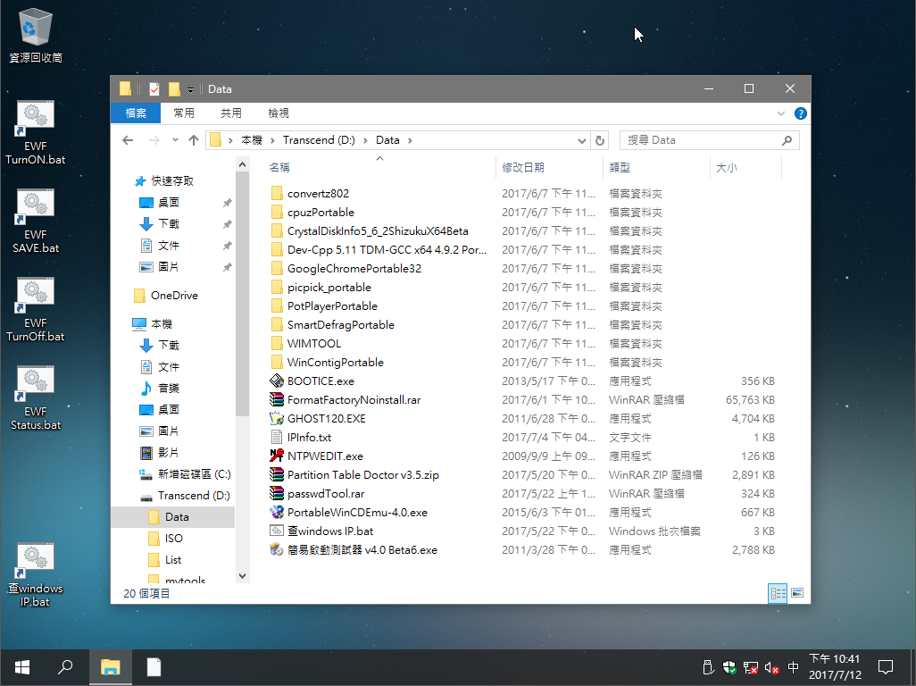 ※注意不要裝太多軟體,盡量使用 Portable 版,放在 "USB:\\Data\" 資料夾下,不要占用 VHD 的空間