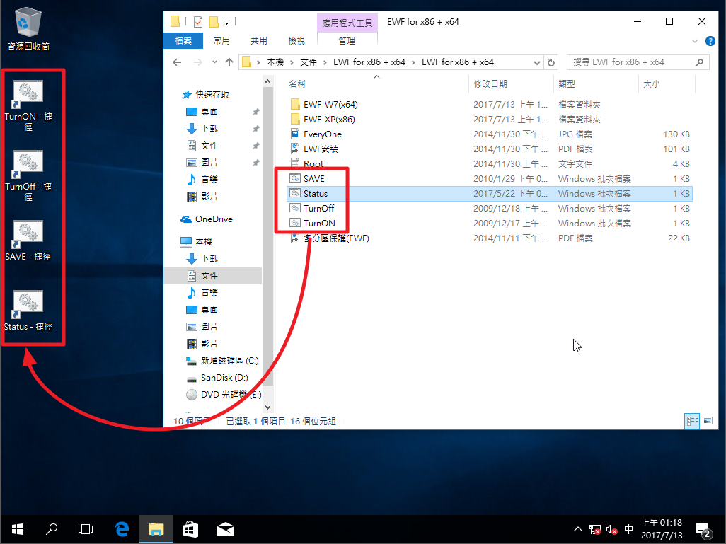 TurnOff.bat 是保存本次數據. 並重啟動及關閉 EWF 覆蓋層。