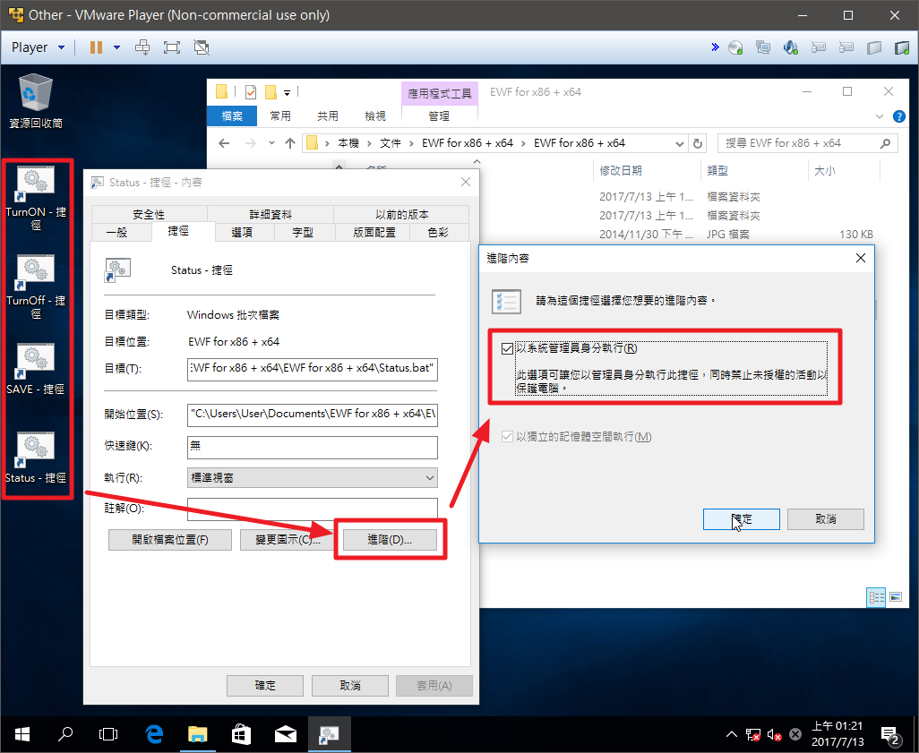 對著捷徑右鍵→內容→進階→以系統管理員身分執行→確定套用,四個捷徑都要分別做