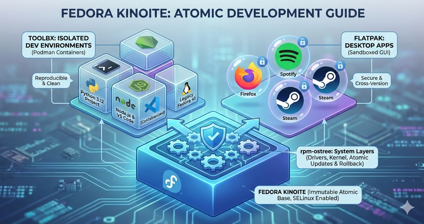 歡迎使用 Fedora Kinoite!這是一套基於 KDE Plasma 桌面的「原子化」(Atomic) 作業系統。如果你第一次使用它,這份指南會幫助你快速上手。