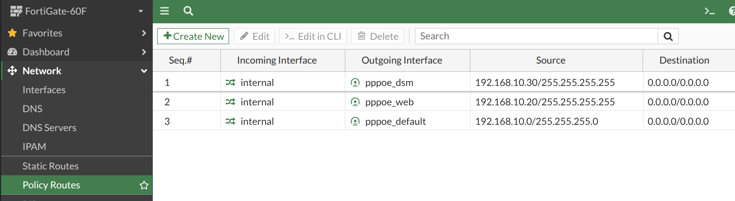 我家是申租中華電信 Hinet 光世代雙向 500M (7 浮 1 固),我在這裡用了 4 個公網 IP。FG-60F 透過多 PPPoE 撥接取得這些 IP,並使用 Policy-Based Routing 及 Virtual IP 決定不同內部設備的流量走向。