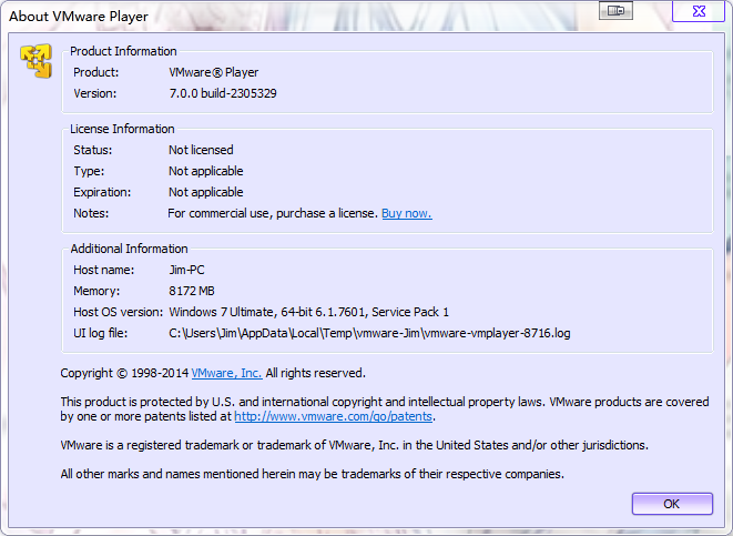 VM: VMware Player (示範:7.0.0 build-2305329): 官方載點