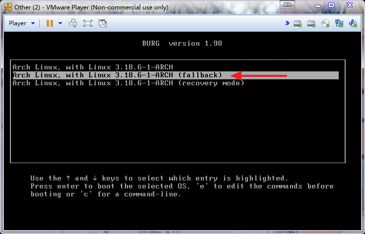 4.. 確認 GRUB 內有 "fallback" 開機選項 (本人使用 BURG,請忽略)