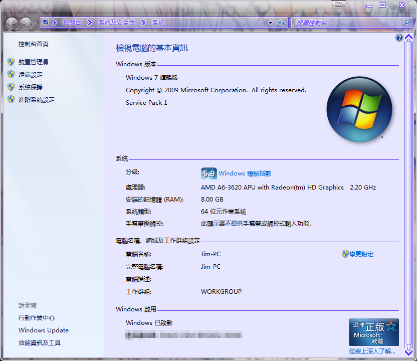 HOST: Win7 (示範: 旗艦 SP1) 電腦